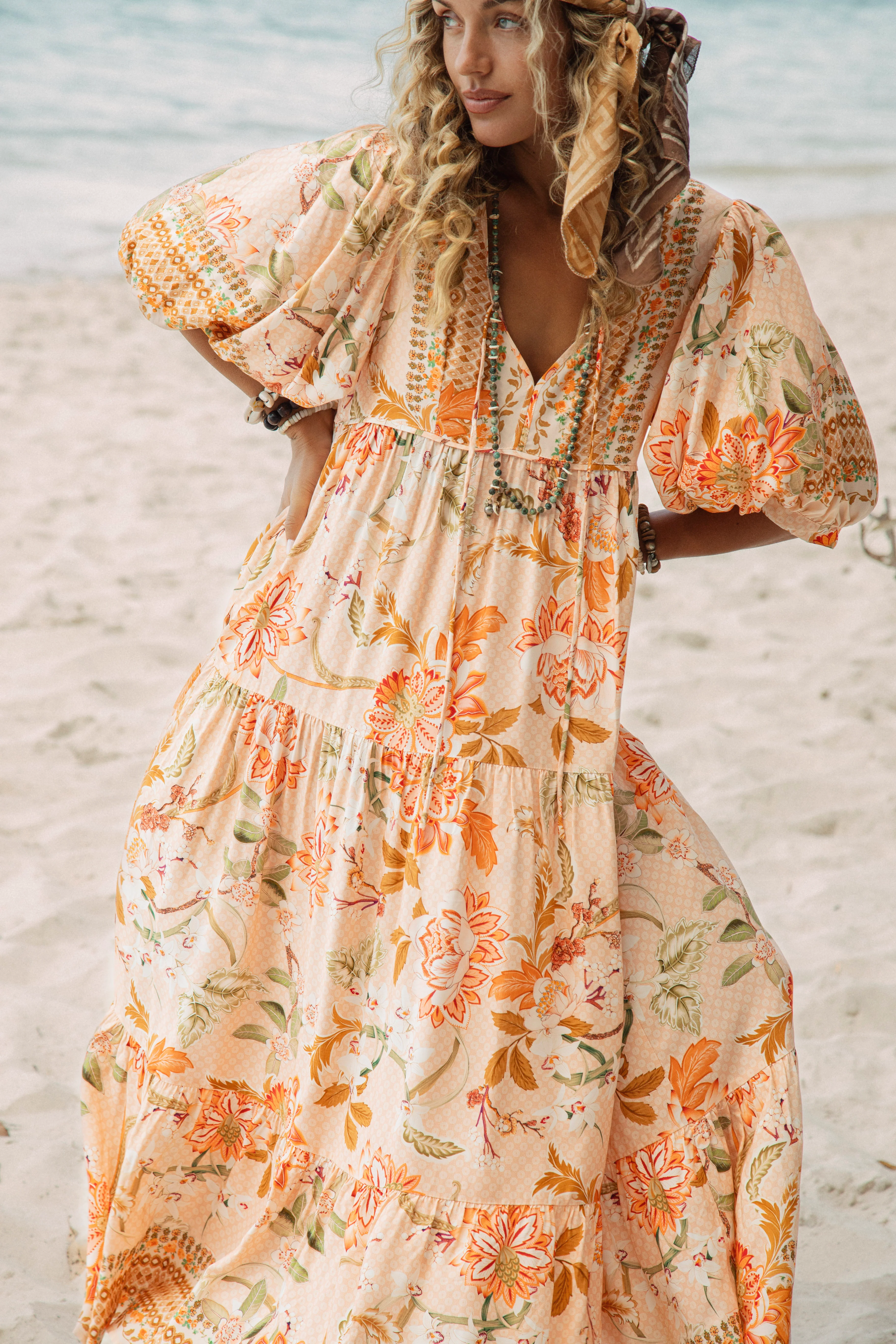 A boho smock dress in sunlit coral and honey tones, in the most flattering and comfortable silhouette. Effortless, feminine, and made for dreamy summer days.